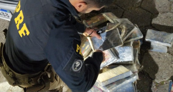 Durante abordagem a um automóvel placas de Biguaçu, os PRFs identificaram que o passageiro tinha diversas passagens criminais. A busca no veículo com auxílio do cão farejador da Polícia Militar encontrou diversos tabletes da cocaína escondidos no interior do painel e nas caixas de roda.
