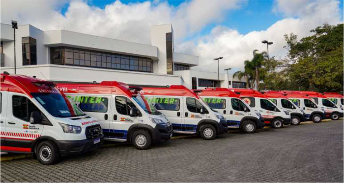 Os veículos foram adquiridos com recursos da Bancada Catarinense e do Ministério Público do Estado. Doze ambulâncias serão direcionadas à renovação da frota do Samu 192 em doze municípios – 03 Unidades de Suporte Avançado (USA) para Araranguá, Balneário Camboriú e Chapecó; 09 Unidades de Suporte Básico (USB) para os municípios de Bom Retiro, Bombinhas, Blumenau, Criciúma, Fraiburgo, Itapema, Itapoá, São Lourenço do Oeste e Seara.