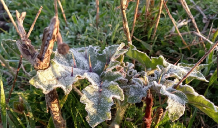 A menor temperatura foi de -0,34°C nesta manhã de sexta, 04 - Foto: Divulgação Cidades da Serra de Santa Catarina amanheceram com geada após registrarem temperaturas abaixo de zero nesta sexta-feira, 04 de outubro. Em São Joaquim, os termômetros marcaram -0,39°C por volta das 6h.
