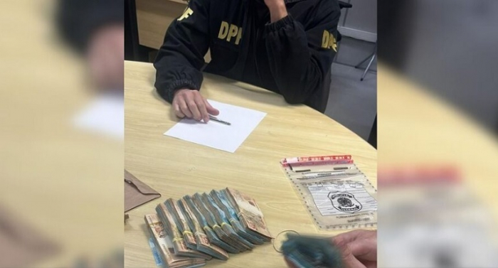 Ele foi abordado pela Polícia Federal em uma fiscalização de rotina dos passageiros e bagagens quando os agentes perceberam que o conteúdo aparentava ser de maços de dinheiro.