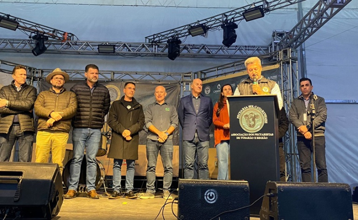 Foram registradas e convidadas para compor o palco as seguintes autoridades: Djalma Figueiredo Júnior, presidente da Associação de Pecuaristas de Tubarão e Região; Estêner Soratto, prefeito de Tubarão; Denis Matiola, vice-prefeito de Tubarão; Marcos Savi Mondo, secretário de Agricultura de Tubarão; Felippe Tessmann, presidente da Câmara de Vereadores de Tubarão; vereadores de Tubarão, Matheus Madeira, Rafael Tchê e Everson Martins; Dionísio Bressan, presidente da Copagro; Henrique da Silva Corrêa, gerente regional da Cidasc; Gustavo Claudino, presidente da Cidasc; Jonathan da Rosa Pereira, presidente da Cooperazul; Edmilson Costa Moreira, presidente do Ceasa; Maicon dos Reis Soares, presidente do Sindicato Rural e representante do sistema Faesc; e os deputados estaduais José Milton Scheffer e Volnei Weber.