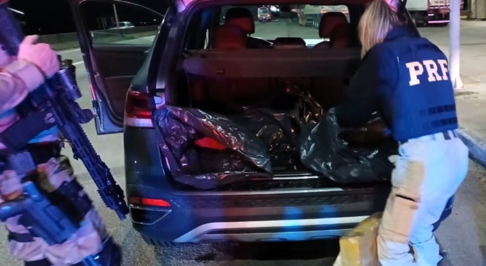 A PRF recebeu a informação da PM de que um SUV placas de Belo Horizonte/MG poderia estar drogas e abordou o veículo.
