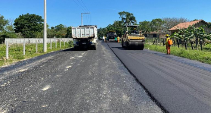 Nesta segunda-feira, 11 de novembro, com tempo firme, a Confer Construtora, responsável pelos trabalhos, reforçou a equipe de colocação da massa asfáltica. A ideia é aproveitar ao máximo as boas condições do tempo.