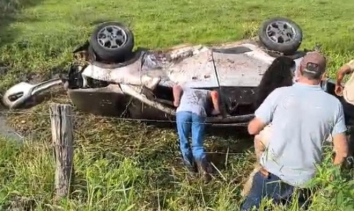 A Polícia Militar também foi acionada - Foto: Divulgação Um carro com cinco ocupantes capotou no último sábado, 25 de outubro, na Rodovia Norberto Brunato, no Bairro Km 63, em Tubarão.