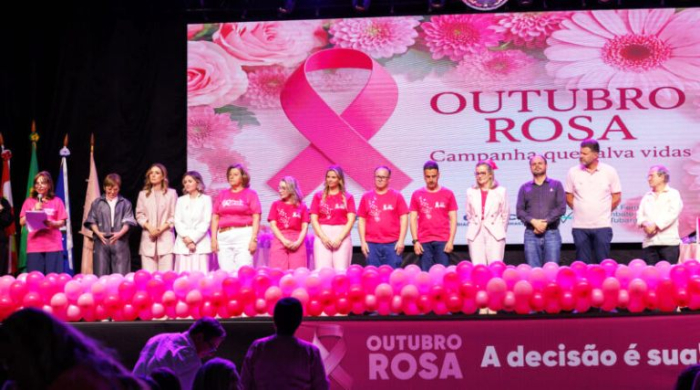 A programação do Outubro Rosa prossegue até o dia 18 de outubro - Foto: Divulgação Centenas de mulheres, muitas delas vestidas com trajes cor-de-rosa, participaram na tarde desta quarta-feira, 08 de outubro, da abertura oficial da campanha Outubro Rosa, em Tubarão.