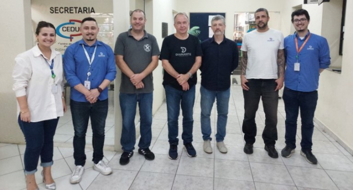 Na ocasião, também estavam presentes o diretor da instituição, Jarbas Westrupp Corrêa, o coordenador técnico do curso de Mecânica Integral, Huilian Raldi Vitorassi, a analista de Responsabilidade Social e Governança da Diamante, Beatriz Joaquim Ribeiro, o analista de Infraestrutura e Cloud da Diamante, Ezequiel Conceição Silveira, e o analista de Infraestrutura de Redes e Telecom, Marcos Gonçalves.