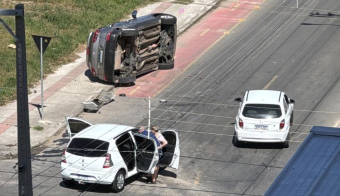 Ocorrência foi registrada no início da tarde deste domingo - Foto: Joyce Santos/Revista Única A Revista Única flagrou, no início da tarde deste domingo, 22 de março, uma colisão seguida de capotamento na esquina da Avenida Pedro Zapelini com a Rua Teodoto Tonon.