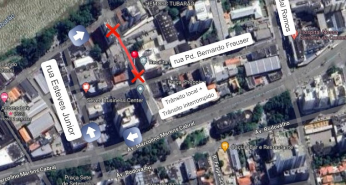 Desvios devem ser realizados - Foto: Divulgação A Tubarão Saneamento informa que, neste domingo, 21 de julho, das 7 às 18 horas, a Rua Tubalcain Faraco, entre as ruas Bernardo Freuser e Lauro Muller, terá o fluxo de trânsito interrompido para a execução da rede coletora de esgoto, no Bairro Centro.