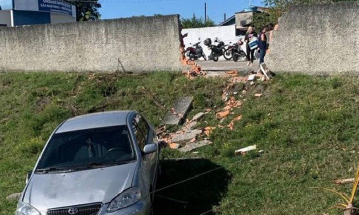 Não houve feridos - Foto: Divulgação Na manhã da última terça-feira, 14 de outubro, uma motorista perdeu o controle do veículo e atravessou o muro da Unidade Básica de Saúde (UBS) do Bairro São Martinho.