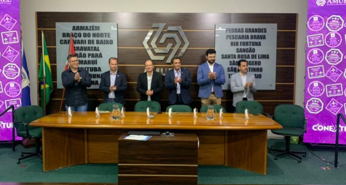 O evento inicia com a explanação do Presidente da Associação de Municípios da Região de Laguna – Amurel e Prefeito de Laguna Samir Ahmad e do Presidente da Associação de Municípios da Região Carbonífera – Amrec e Prefeito de Morro da Fumaça Agenor Coral.