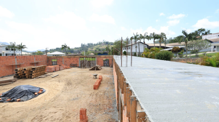 O valor da obra é de R$ 1.288.436,04 - Foto: Divulgação A construção do ginásio da Escola Municipal de Educação Básica (EMEB) João Hilário de Mello, que atende a comunidade do Bairro Sertão Dos Corrêa, entrou na fase de concretagem, o que mostra o ritmo adiantado em que a obra se encontra.