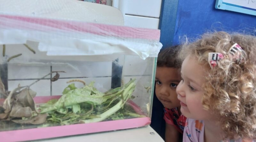“Coletamos algumas lagartas para observarmos o desenvolvimento, a cada dia um novo ser aparece, as borboletas estão saindo dos casulos e causando encantamento às crianças e aos adultos que participam do processo”, garante a professora.