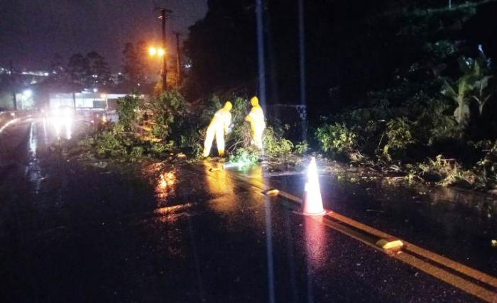 Queda de árvore de grande porte sobre a SC que corta o município, o Corpo de Bombeiros Militar realizou o corte e a retirada da pista.