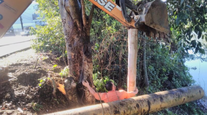 Para este trabalho, a Defesa Civil contou, também, com o apoio da Secretaria de Infraestrutura, que encaminhou ao local uma retroescavadeira.