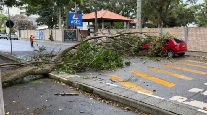 Uma delas chegou a atingir um veículo, mas provocando somente pequenos danos - Foto: Divulgação A Secretaria de Proteção e Defesa Civil foi acionada na última terça-feira, 13 de janeiro, por meio do telefone de emergência 199 para o atendimento de uma ocorrência na rua Lauro Müller. Duas árvores caíram durante a passagem da tempestade que atingiu o município, acompanhada de fortes ventos. Uma delas chegou a atingir um veículo, mas provocando somente pequenos danos.