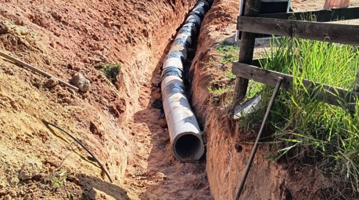 Foram utilizados mais de 150 tubos de concreto de diâmetros variados - Foto: Divulgação A Estrada Geral de Linha Mesquita ganhou nos últimos dias, travessias de sistema de drenagem pluvial em 10 pontos ao longo da via.