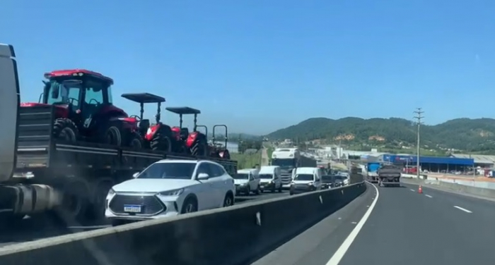 Às 9h45 o fluxo lento em virtude do fechamento de uma das pistas no sentido Sul provocava fila de aproximadamente cinco km, a partir do km 337 da rodovia.