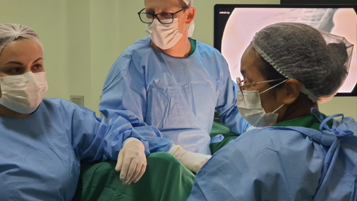 A cirurgia, considerada de alta complexidade, é inédita na região. Dr. Leandro Gugel, ginecologista, especialista em cirurgia ginecológica, atuando em cirurgia minimamente invasiva, tanto robótica quanto laparoscópica e também com atuação em endometriose, teve como equipe os doutores Gustavo Botega e Marcelo Dexheimer, além da instrumentadora a Andressa Domagalki, a anestesiologista Daniela Salvatori e todo o apoio técnico dos profissionais do Hospital Unimed Tubarão.
