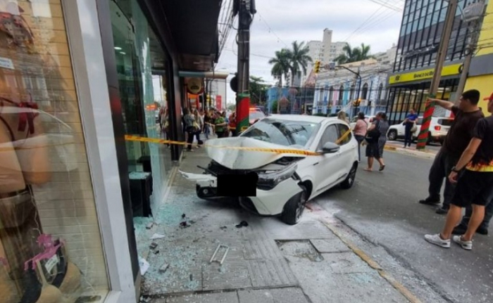 A vítima estava consciente e não precisou de atendimento hospitalar - Foto: Divulgação Uma idosa de 70 anos perdeu o controle do veículo e colidiu contra a vitrine de uma loja no final da tarde da última quarta-feira, 04 de dezembro, na Avenida Marcolino Martins Cabral, no Centro de Tubarão.