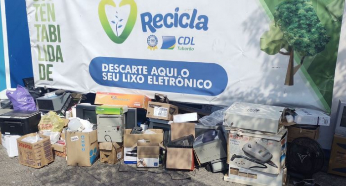 A próxima coleta ocorrerá em março - Foto: Divulgação Desenvolvido há 11 anos, o projeto Recicla CDL já recolheu mais de 200 toneladas de lixo eletrônico em Tubarão. A média é de 20 toneladas coletadas por ano durante as edições do Dia D.
