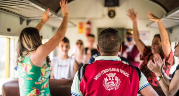 O desconto é válido apenas para o embarque no dia 14 de setembro - Foto: Divulgação O trem partirá do Museu Ferroviário de Tubarão em direção a Laguna em dois horários: às 9h e às 14h30. A viagem de ida e volta terá cerca de três horas de duração e contará com música ao vivo de sanfoneiros e serviço de bordo com venda de bebidas e lanches.