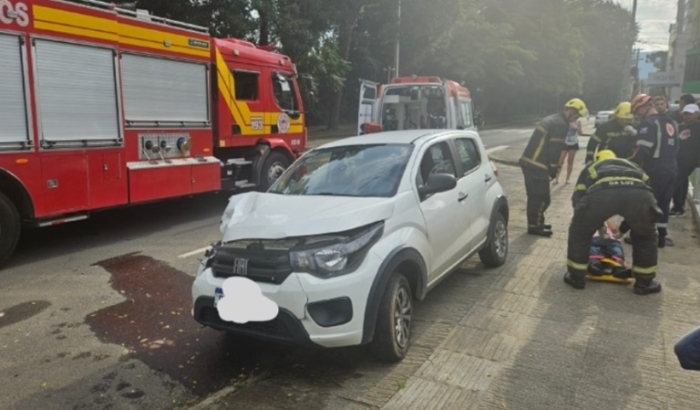 Ele conduzia um veículo Mobi quando colidiu em um caminhão estacionado na via. O Corpo de Bombeiros foi acionado e encontrou o motorista com ferimentos na face.