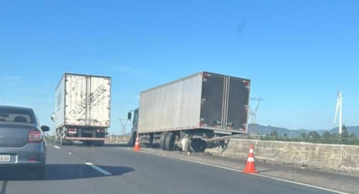Acidente foi registrado na manhã desta sexta, 27 - Foto: Divulgação Na manhã desta sexta-feira, 27 de outubro, um caminhão parou na mureta de proteção na BR-101, no trecho entre Tubarão e Capivari de Baixo, no sentido Sul.