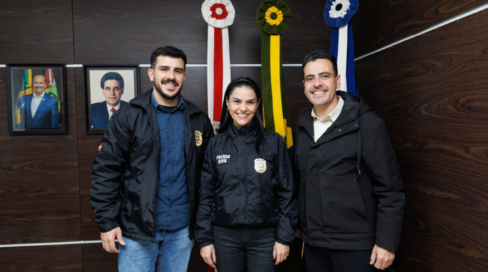 O delegado esteve acompanhado da delegada Carolini de Bona Portão, que deixou a regional para assumir o posto de diretora de Polícia do Sul e conselheira superior da Polícia Civil de Santa Catarina (PCSC).