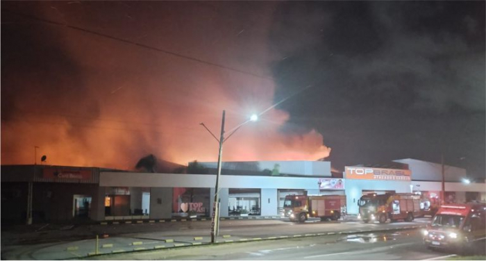 Incêndio provocou danos significativos à estrutura e ao estoque de produtos - Foto: Joyce Santos/Revista Única Depois do incêndio que destruiu praticamente toda estrutura da loja Top Brasil em Tubarão, na noite de sexta-feira, 24 de maio, a empresa emitiu um comunicado na tarde deste sábado, 25, em suas redes sociais.