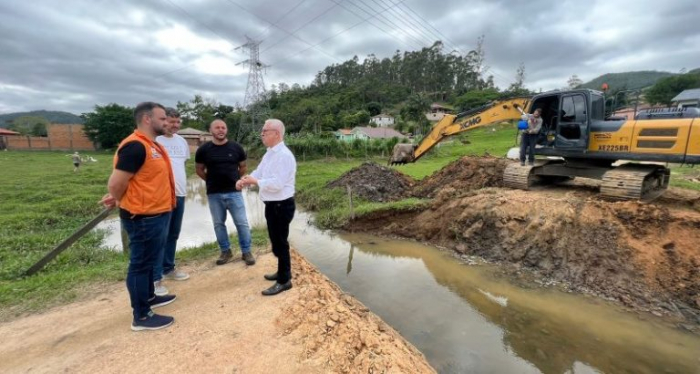 O prefeito Jairo Cascaes acompanhou o início dos trabalhos que vão promover maior vazão da água na região.