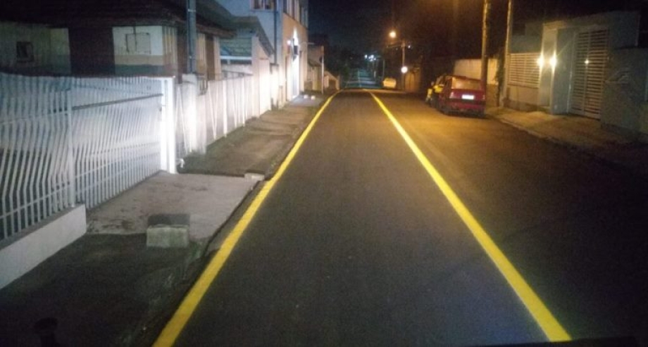 Foto: Divulgação Na noite da última sexta-feira, 24 de março, a pavimentação asfáltica e a sinalização da Rua Rubens Faraco, no Bairro Humaitá, foram concluídas.