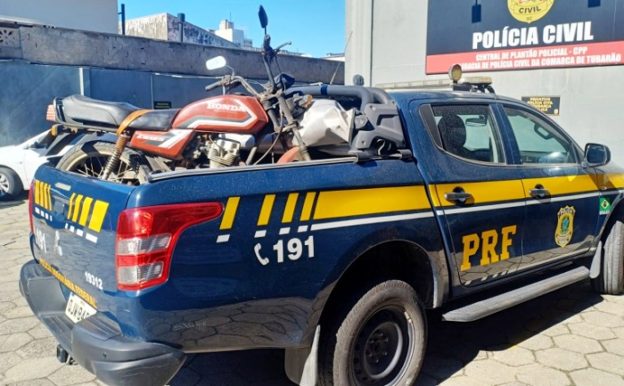 A motocicleta foi recolhida para o pátio conveniado - Foto: Divulgação A Polícia Rodoviária Federal (PRF) prendeu um homem na manhã desta terça-feira, 1º de julho, na BR-101, em Tubarão.