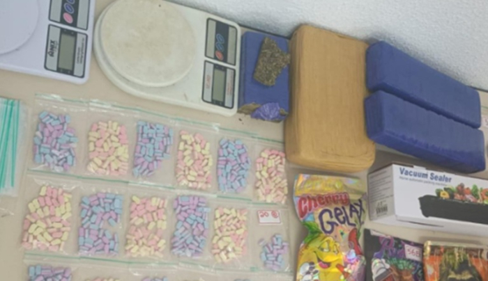 No interior de um móvel e na geladeira, os militares localizaram e apreenderam 836 comprimidos de ecstasy, aproximadamente 3,2 quilos de maconha e 18 gramas de haxixe.