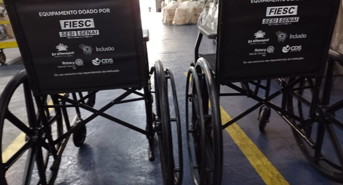 “Todo esse material foi entregue a uma indústria da região, que utiliza como matéria-prima, e esse valor foi revertido em cadeiras de rodas”, explica a interlocutora de responsabilidade social Regional Litoral Sul da Fiesc, Cíntia Nowasco.
