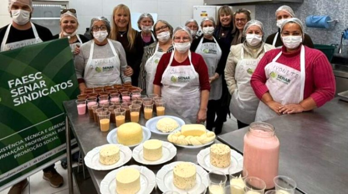 A capacitação foi conduzida pela instrutora Simone Burin de Oliveira, credenciada no Sistema FAES/SENAR, que orientou os presentes na produção de queijos mussarela, colonial, minas frescal, quark e petit suisse, além de requeijão cremoso, manteiga, geleia de soro, pasteurização da nata, bebida láctea não fermentada, iogurte natural, doce de leite (tradicional, com ameixa, coco e chocolate) e leite condensado.