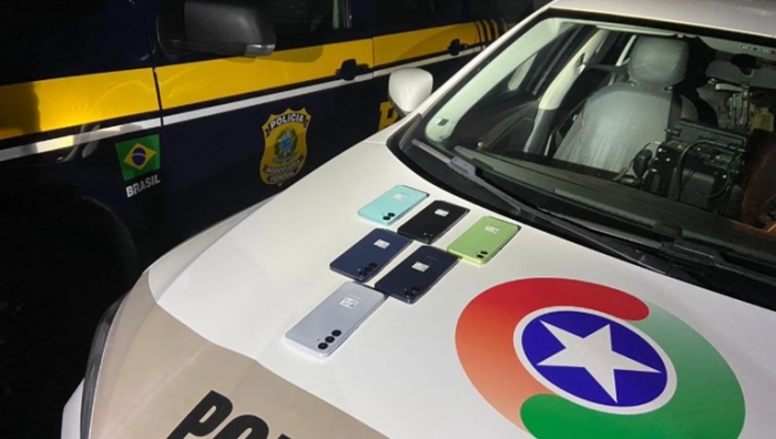 Durante a busca no veículo, os policiais encontraram os celulares furtados na bolsa de uma das passageiras.