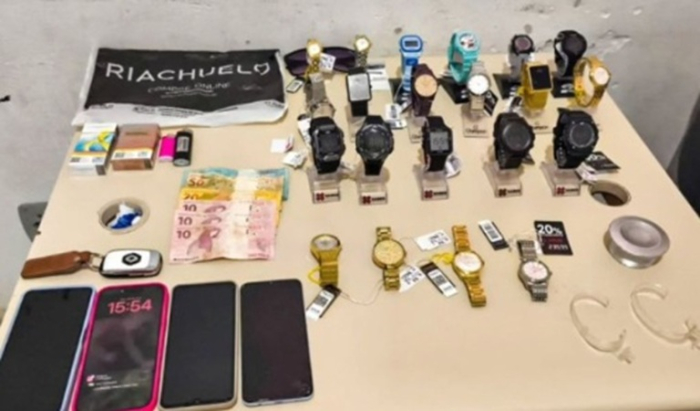 Quatro mulheres e um homem foram flagrados com os relógios já em Palhoça - Foto: Divulgação A Polícia Militar prendeu cinco suspeitos, entre eles quatro mulheres e um homem, por furtar 20 relógios de uma loja em um shopping de Tubarão.