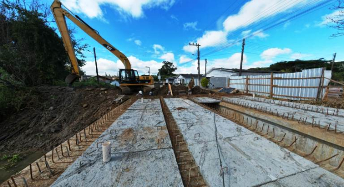 Atualmente, a obra está na fase de concretagem - Foto: Divulgação A Tubarão Saneamento informa que a construção da nova ponte José Heitch chegou à fase final.