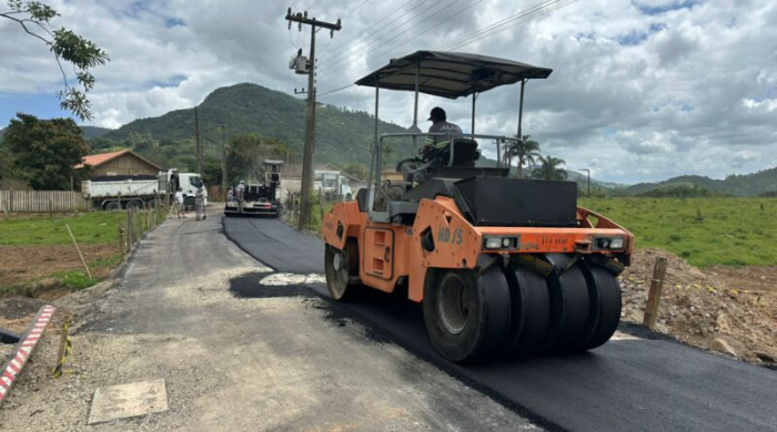 As obras são executadas por empresa terceirizada e contemplam drenagem, pavimentação asfáltica e sinalização viária