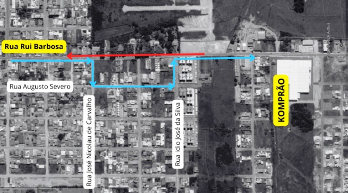 O trânsito no sentido Centro–bairro será desviado pelas ruas José Nicolau de Carvalho, Augusto Severo e Idio José da Silva, retornando em seguida para a Rua Rui Barbosa. Já no sentido bairro–Centro, o fluxo seguirá pela própria Rua Rui Barbosa, com desvio de pista no local da intervenção.