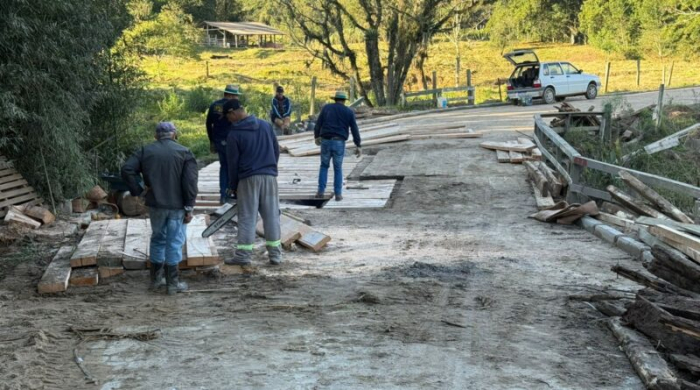 A previsão é que a obra seja concluída nesta quinta, 03 - Foto: Divulgação A prefeitura de Tubarão, por meio da Secretaria de Agricultura, iniciou nesta quarta-feira, 02 de julho, a reforma de uma ponte localizada no Bairro Caruru, a conhecida Ponte do Grosso.
