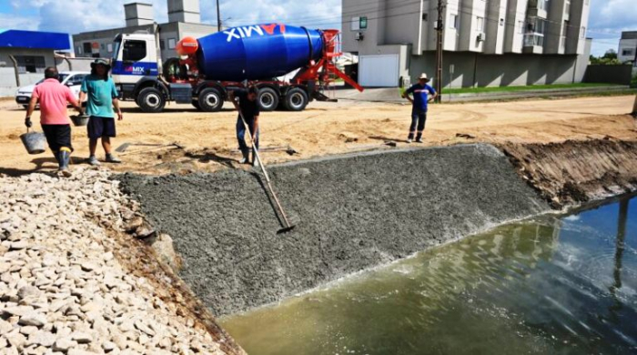 Os trabalhos de macrodrenagem na Rua Aldo Hülse promoveram uma ampliação significativa da capacidade de escoamento - Foto: Divulgação A concretagem do enrocamento nas aduelas da Rua Aldo Hülse, trabalho executado pela Secretaria de Infraestrutura, foi realizada nesta sexta-feira, 27 de fevereiro, esta que é a etapa que marca a fase final das obras de macrodrenagem no local.