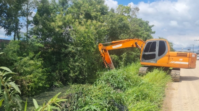 Quantidade grande de vegetação, que cresce principalmente agora no verão nestas valas, dificulta a vazão - Foto: Divulgação O trabalho conjunto de algumas secretarias municipais para limpeza de valas que fazem parte do sistema de drenagem do município, iniciado na última semana, teve prosseguimento nesta segunda-feira, 03 de fevereiro.
