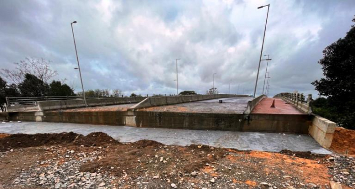 Um lado da estrutura de transição foi sobreposto em uma espécie de espera, existente na ponte, encaixado sobre ela. Por ser de concreto, a viga precisa passar por um processo de “cura”, por período de 28 dias, portanto, até o final deste mês de agosto.