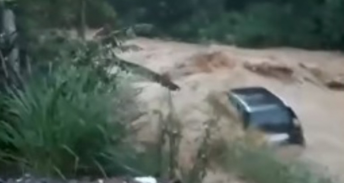 Grande volume de chuva caiu em pouco tempo - Foto: Reprodução Chuvas intensas provocaram um amanhecer drástico na região de Brusque nesta quinta-feira, 16 de novembro. Na cidade de Vidal Ramos um carro foi arrastado pelas águas do rio Itajaí-Mirim.