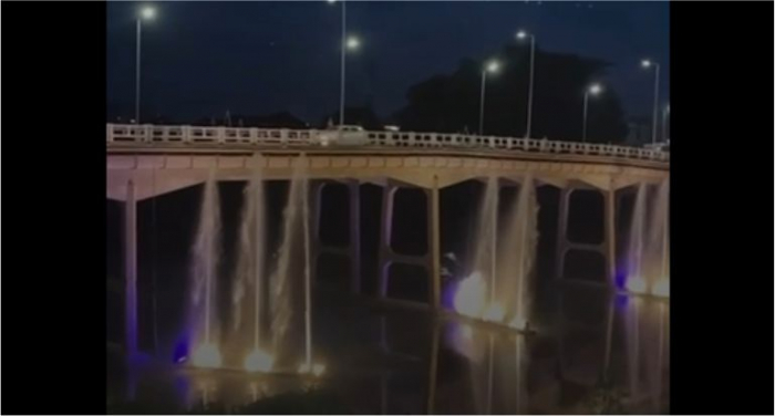 A instalação dos equipamentos foi realizada na última segunda-feira, 26 - Foto: Reprodução Quem passa pelas imediações da ponte Heriberto Hülse, no Centro de Tubarão, na noite desta terça-feira, 27 de novembro, já presencia o espetáculo das águas dançantes no Rio Tubarão.