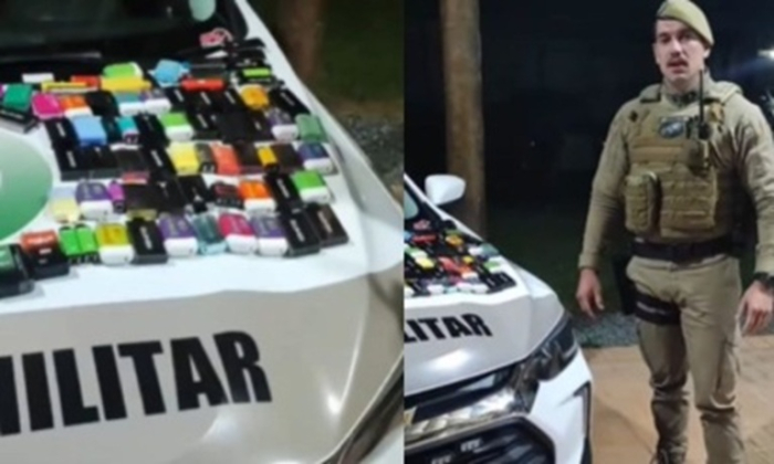 Os cigarros eletrônicos foram recolhidos pela Polícia Militar - Foto: Reprodução Uma iniciativa de conscientização em conjunto com a Polícia Militar resultou na apreensão de 150 cigarros eletrônicos em uma estcola estadual no Norte de Santa Catarina.