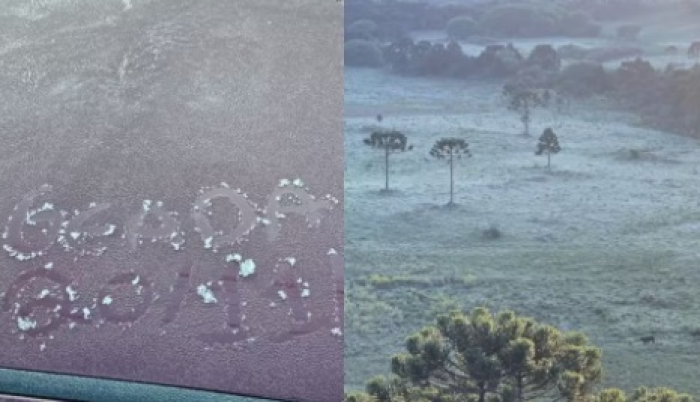 Imagens foram registradas no início da manhã desta quinta, 20 - Foto: Mycchel Legnaghi e Sérgio Felipe Rodrigues O amanhecer desta quinta-feira, 20 de novembro, foi gelado nas áreas altas do Planalto Sul de SC, com temperatura de 2°C a 5°C e registro de geada em São Joaquim e Bom Jardim da Serra.