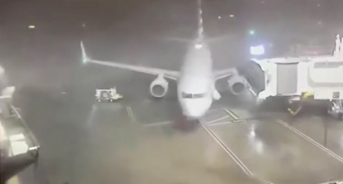 Aeronave vazia da American Airlines foi empurrada para fora da pista do aeroporto de Dallas Fort Worth durante tempestade