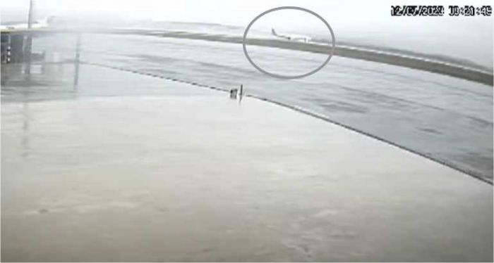 Vídeo: Divulgação - Foto: Reprodução Câmeras de vídeo registraram o exato momento em que a aeronave derrapa na pista, durante pouso na manhã desta quarta-feira, 12 de julho, no Aeroporto de Florianópolis.